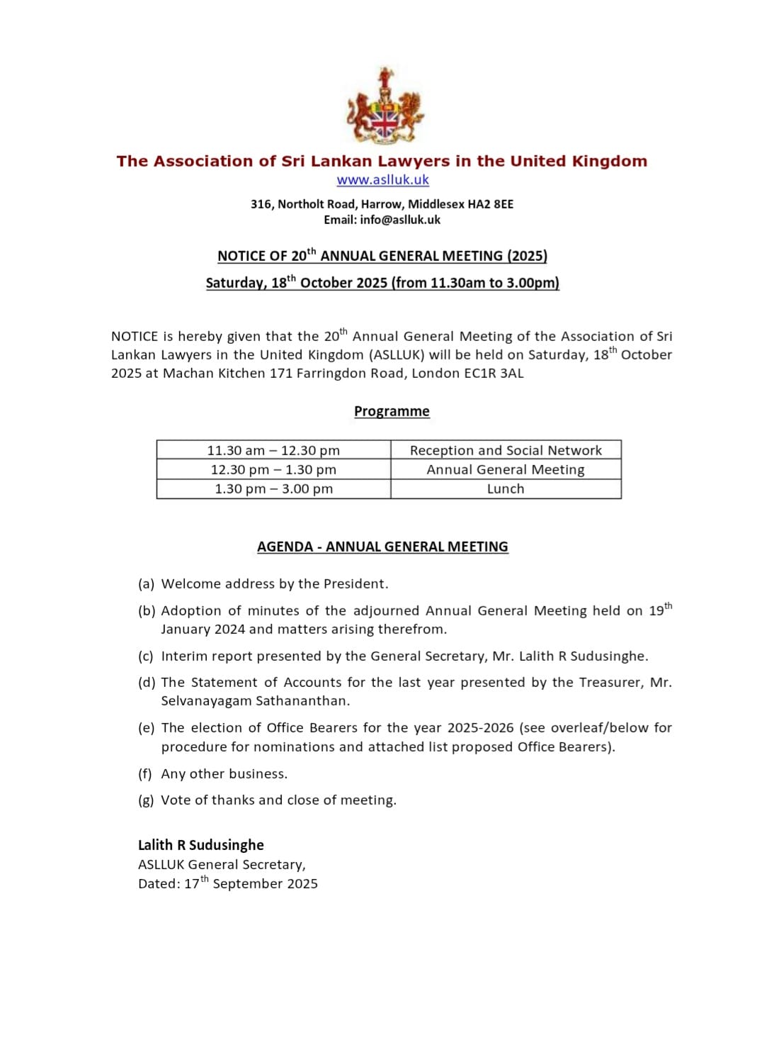 Our warm appreciation goes to our principal sponsors: Land Rover Richmond, Lloyds PR Solicitors, Sriharan Solicitors, Satha & Co Solicitors, and Solidum Solicitors; as well as to all other sponsors, partners, advertisers, and raffle prize donors. Your generous support was instrumental to the success of the event and to advancing ASLLUK’s ongoing work.